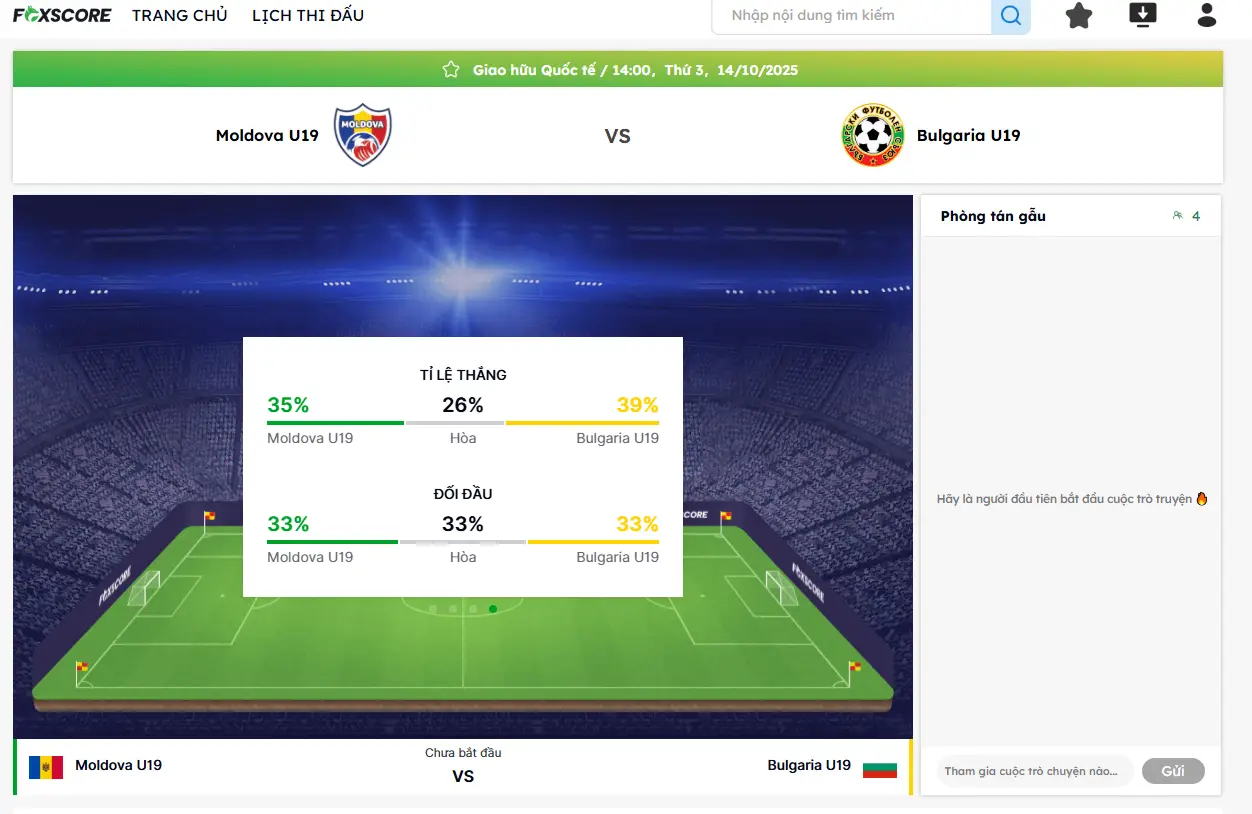 Tại Foxscore Dựa trên những phân tích về tương quan lực lượng và phong độ hiện tại, Moldova U19 được dự đoán sẽ thua Bulgaria U19 trong trận giao hữu sắp tới. Bulgaria U19 nhìn chung sở hữu một lứa cầu thủ trẻ có tiềm năng và kinh nghiệm thi đấu quốc tế nhỉnh hơn. Đội bóng từ Đông Âu thường có xu hướng xây dựng lối chơi kỷ luật, thể lực tốt và khả năng tận dụng cơ hội hiệu quả, điều này có thể gây khó khăn lớn cho Moldova U19, đặc biệt là trong một trận đấu mang tính thử nghiệm.